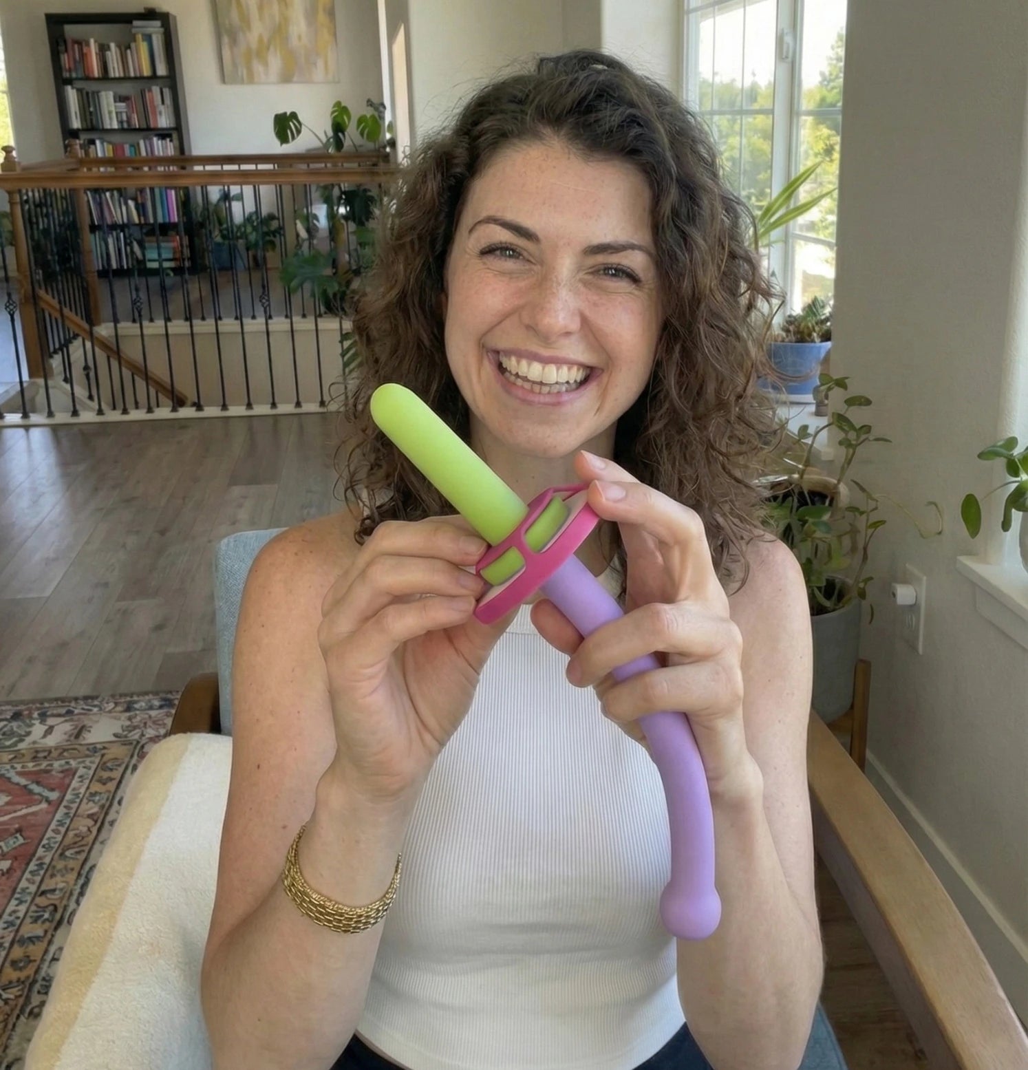 Die gebogene Form des Griffs wurde entwickelt, um einen natürlichen und bequemen Halt zu bieten und die Handhabung der Dilatatoren bei intimen Rehabilitationsübungen zu erleichtern.